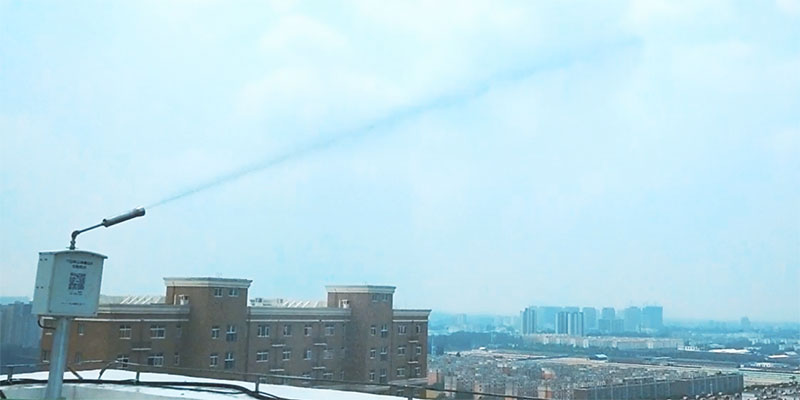 該項目位于濮陽市天橋花園街道辦事處高空樓頂,采用高空高壓超遠距離噴霧,覆蓋面積上萬平方,大大的改善了附近的城市空氣質量。