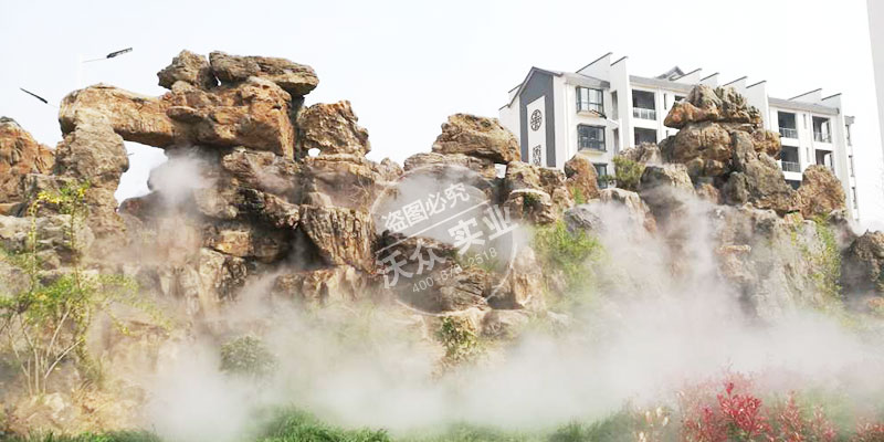 該小區(qū)安裝了沃眾的沃眾的“云霞菲霧”系統(tǒng),霧森與假山綠植相結(jié)合,提升小區(qū)檔次,改善小區(qū)居住環(huán)境。