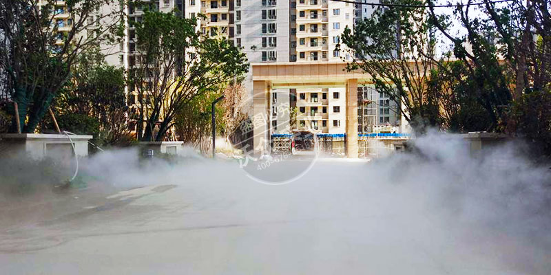 國際城五期,小區云霞菲霧造景降溫項目。炎炎夏日已經來臨,云霞菲霧系統(霧森)可以有效的改善小區環境,增加負氧離子濃度,降低小區溫度。