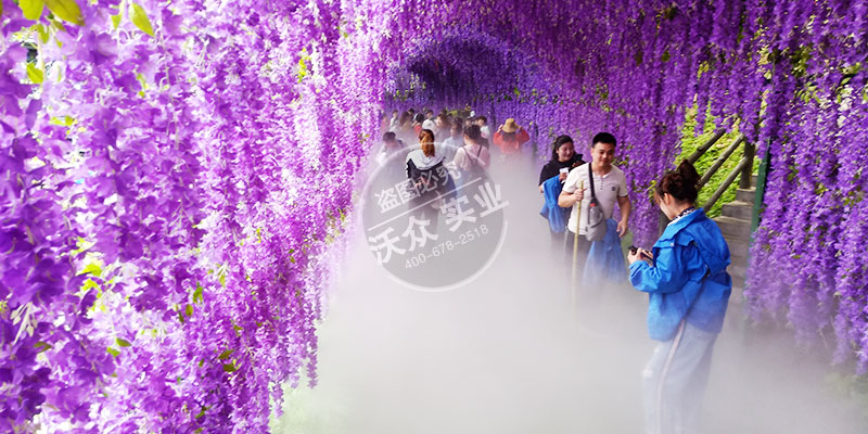 老君山花廊霧森造景項目依托于美麗的紫羅蘭花廊為背景,霧森水景鋪于地面,由下而上蔓延開來,游客置身霧中,無不感嘆,美哉美哉!