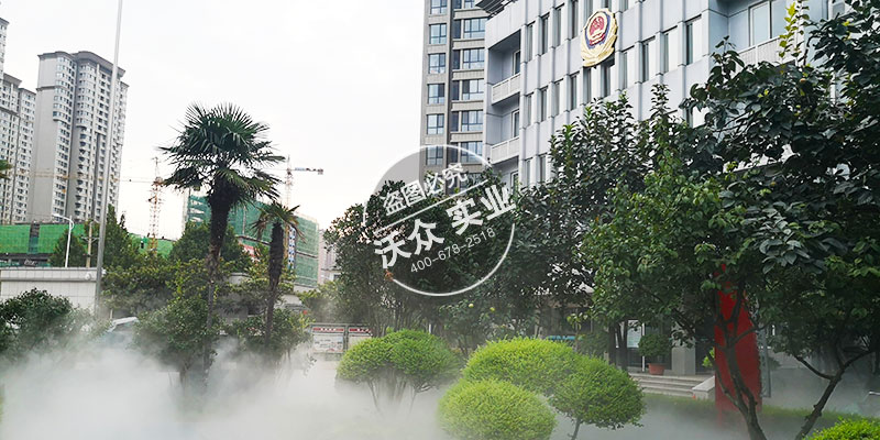 該項目位于河南省公安廳第一工程分局,在院內綠化帶進行景觀霧亮化,達到降塵、美化環境的效果。