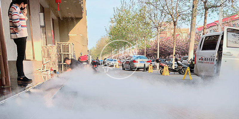 位于許昌禹州林溪尚院售樓部營銷中心門口階梯上,安裝的霧森造霧吸引,吸引客戶來訪。