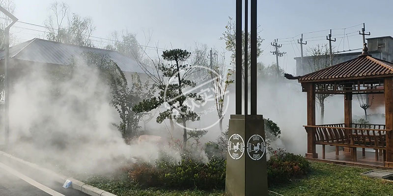 該項(xiàng)目位于駐馬店閆湖自來水廠,圍繞大門兩側(cè)綠植/水系四周的景觀造霧施工的云霞菲霧造景項(xiàng)目,目前已完工,交付客戶使用。