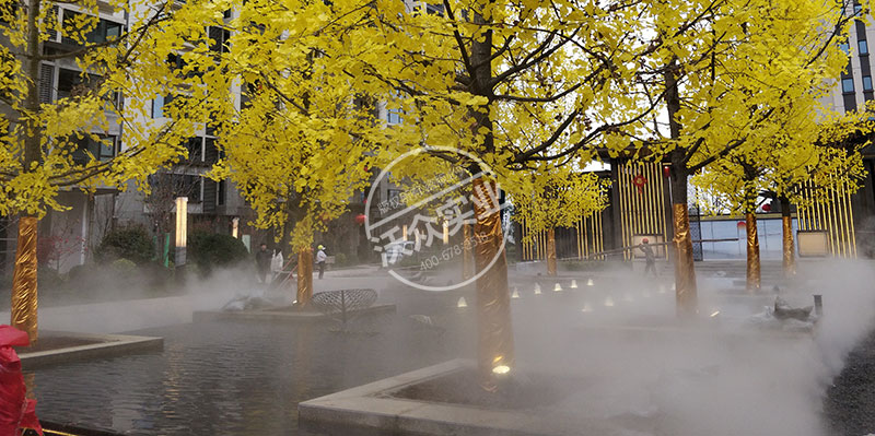 陜西寶雞吾悅華府一期,小區(qū)內圍繞水系做的霧森造景項目,已完工。
