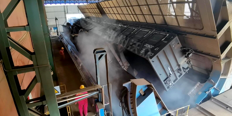該項目位于安陽沙鋼永興,在翻車機兩側定點安裝干霧抑塵裝置,在翻車機工作的時候,噴出大量10~50微米富含大量負離子的水霧對空氣中的煤塵進行有要的抑制,讓煤塵與水分子結合之后,重新降落在煤倉中,從而達到綠色環保降塵的要求。