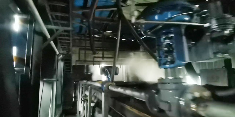 位于平頂山的某焦化廠,在皮帶傳輸焦炭的時候,大量粉塵顆粒從封閉的皮帶倉益出,使得整個車間的工作環境極差。為改善焦化廠工人的工作環境,在皮帶倉內安裝特質的空壓微霧噴頭,調整噴射的距離和方向,平均分布在源頭,終端,過程中,近距離的對傳輸過程中的粉塵進行精準的噴霧降塵,防止粉塵外溢,改善工人工作環境,達到綠色環保生產的要求。