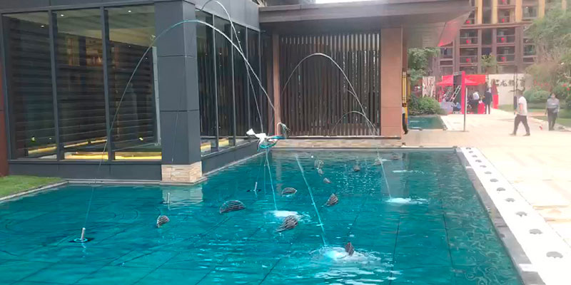 該項目位于滎陽興華路龍熙灣售樓部,在大門兩側安裝了波光跳泉。