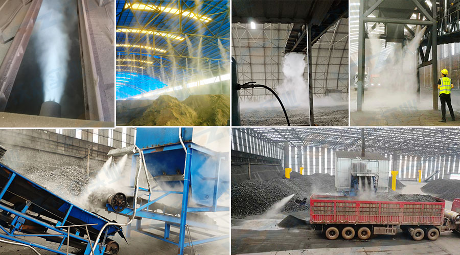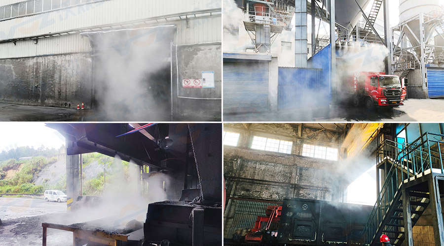 在廠房內(nèi)部,物料堆積處、裝卸點(diǎn)、運(yùn)送帶等區(qū)域,易激起粉塵的區(qū)域,設(shè)置沃眾空壓微霧抑塵設(shè)備,減少粉塵揚(yáng)起,為工作人員創(chuàng)造良好工作環(huán)境。