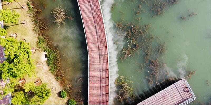 鄭州雕塑公園云霞菲霧項目依托于水中棧道,在棧道兩側做噴霧效果,菲霧浮于賈魯河上面,猶如一層面紗,讓河水變得美麗而神秘。